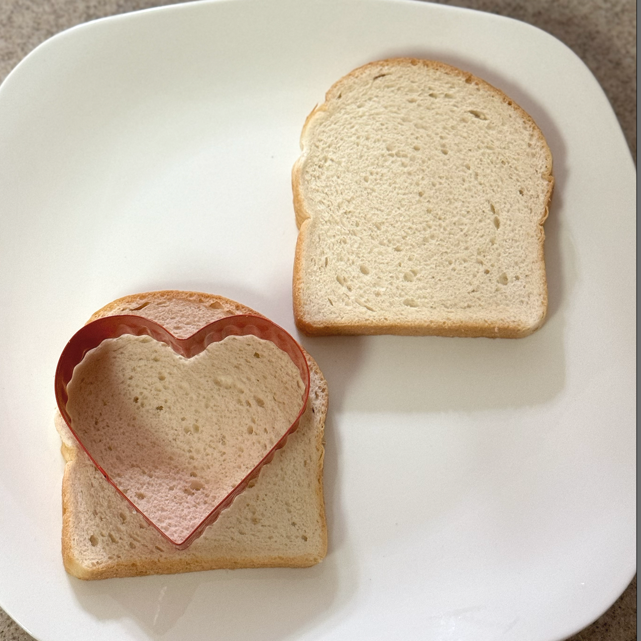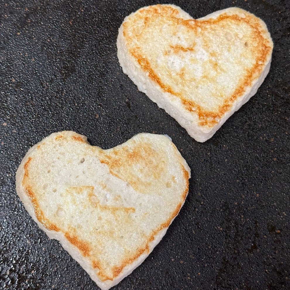A cookie cutter makes a quick easy heart. Dip the heart into a mixture of a 1/2 cup of egg whites and a 1/4 cup of Fairlife milk whisked together.